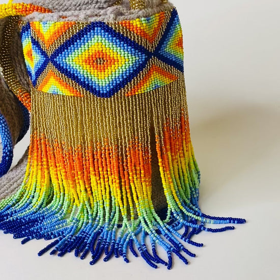 Handwoven from 100% Colombian wool, then handbeaded in glass beads by the same artisan. These coveted bags are made from start to finish by an indigenous woman in Colombia and are each a work of art. Never mass produced. No detail is left out.